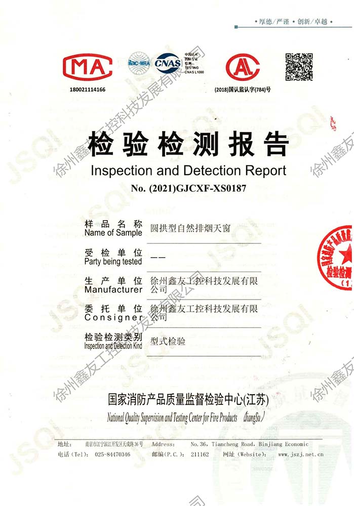 徐州鑫友工控科技發(fā)展有限公司成立于2008年,占地31600平方米,全資子公司:江蘇良紫工程科技有限公司,旗下 有“鑫友”及“MASTER.W主人窗控”兩個品牌系列,公司全面貫徹執(zhí)行IS09001:2015質(zhì)量管理體系標準,產(chǎn)品順利通過歐盟CE認證和中國***消防電子產(chǎn)品認證,通過可燃性粉塵環(huán)境下、爆炸性環(huán)境下防爆合格產(chǎn)品檢驗。排煙天窗整窗通過***消防產(chǎn)品質(zhì)量監(jiān)督檢驗中心檢測。先后獲得多項******及榮譽證書。集研發(fā)、加工、生產(chǎn)、制造、銷售、安裝及售后于一體,是一家高起點、研發(fā)能力強的專業(yè)智能化***技術(shù)企業(yè)。
